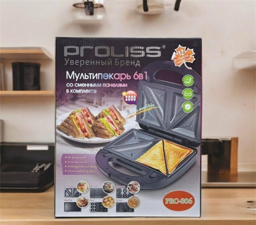 вафельница 6в1 Модель:806 В коробке 1/6 Цена:9400 Производитель:PROLISS
